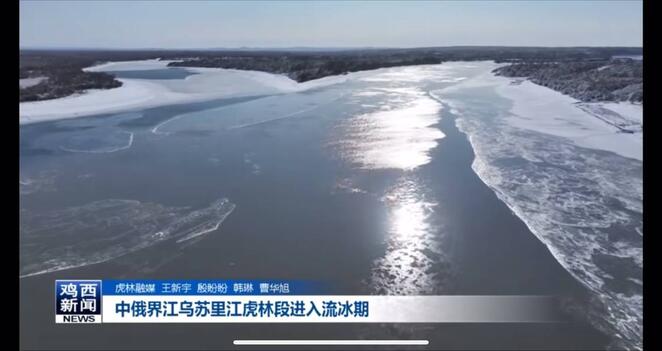 Реку Уссури в районе деревни Хутоу начал сковывать лёд